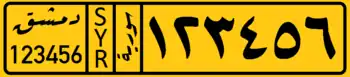 A Syrian license plate