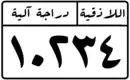 • The left-most section: At the top the name of the province in Arabic and below that the registration number (a maximum of 6 digits) in Arabic numerals. The provinces are as follows: