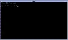 The vi editor in OpenBSD, editing a small "Hello, world!" type Ruby program