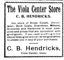 Advertisement for the Viola Center Store, in Viola Center, Audubon County, Iowa