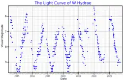 The visual band light curve of W Hydrae, from AAVSO data[1]
