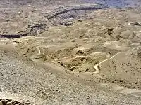 The Wadi Mujib (Arabic: وادي الموجب, Wadi el-Mujib), also known as Arnon Stream (Hebrew: נַחַל ארנון[1]), is a river in Jordan. The river empties into the Dead Sea circa 420 metres (1,380 ft) below sea level.[2] Today, the Wadi Mujib is fed by seven tributaries. The western part of the river is the site of the Mujib Biosphere Reserve, popular for hikes & canyoning amid dramatic rock formations.