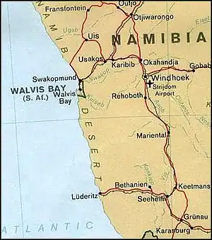 - ↑ Strategic territory and territorial strategy: the geopolitics of Walvis Bay's reintegration into Namibia, David Simon, Namibian Economic Policy Research Unit, 1995, page 8