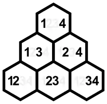 It can be seen that and always have the same digits, and that and are both related to the place-based inversion set. The nontrivial elements of are the sums of the descending diagonals of the shown triangle, and those of are the sums of the ascending diagonals. (Pairs in descending diagonals have the right components 2, 3, 4 in common, while pairs in ascending diagonals have the left components 1, 2, 3 in common.)