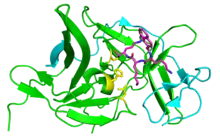 | NS2B | A cofactor for NS3 and together forms the NS2B-NS3 protease complex.[15] Contains transmembrane domains which bind the protease to intracellular membranes. |