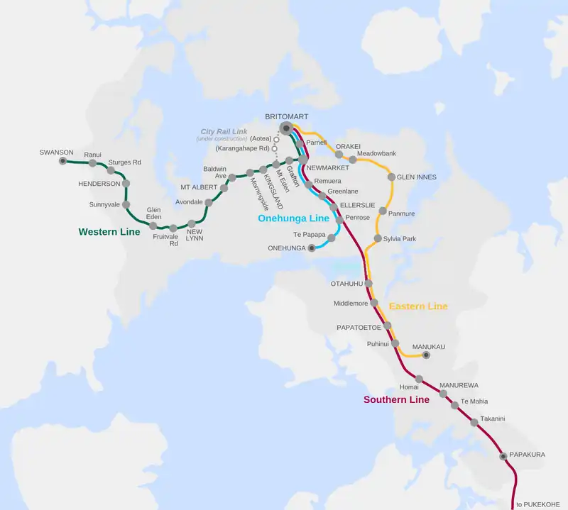 Westfield Junction defines the southernmost extremity of the North Auckland Line (NAL) via Penrose and the point where the North Island Main Trunk (NIMT) line via Glen Innes intersects with the NAL. The NIMT continues south from Westfield Junction toward Otahuhu and Papakura.