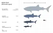| The size of various whale shark individuals with a human for scale | |