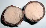 Whoppers are malted milk balls with an artificial flavored "chocolatey coating" produced by The Hershey Company. The candy is a small, round ball about 3⁄4 inch (20 mm) in diameter. They are typically sold in various packaging options: either in a small cardboard candy box, in a larger box that resembles a cardboard milk carton, as the 'Fun Size' variety which is a tube-shaped plastic package sealed at the sides and contains twelve Whoppers weighing 21 grams (0.74 ounces), or as an even smaller variety in a tube containing three Whoppers weighing 6.8 grams (0.24 ounces).