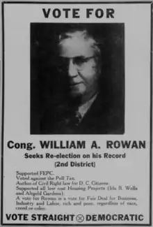 William A. Rowan (November 24, 1882 – May 31, 1961) of Chicago was an American politician who served as a U.S. Representative from Illinois from 1943 to 1947. He previously served as a member of the Chicago City Council from 1927 to 1942. He was a resident of Chicago's East Side community.