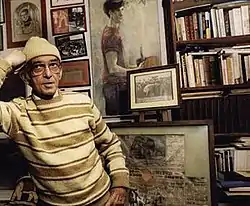 ![]() Stringfellow at his Block Island home, among his books, artwork, and circus memorabilia | |