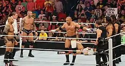 At the Royal Rumble, The Wyatt Family (Luke Harper, Erick Rowan, and Bray Wyatt) cost John Cena his match for the WWE World Heavyweight Championship against Randy Orton.[40] At the Elimination Chamber event, the Wyatt Family attacked Cena during his Elimination Chamber match for the same championship, which directly led to Cena's elimination from the match.[41] Wyatt was motivated by a desire to end "this era of lies", beginning with Cena, because he wanted to expose to the world that Cena being an upholder of all that is moral and good and right was merely a hollow illusion.[49] Proving that Cena was a fraud would ruin his legacy, but Wyatt wanted to take it one step further by turning Cena into a monster.[50] On the March 10 episode of Raw, Cena issued Wyatt a challenge for a match at WrestleMania, which Wyatt accepted.[51]