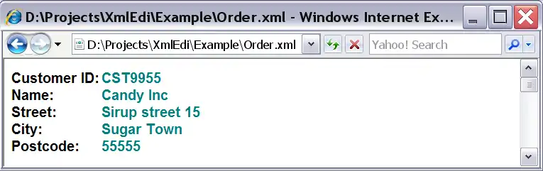 4. Large companies can order goods from small companies via XML/EDIFACT. The small companies use XSLT stylesheets to browse the message content in human readable forms, as shown in Example 3.
