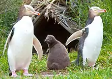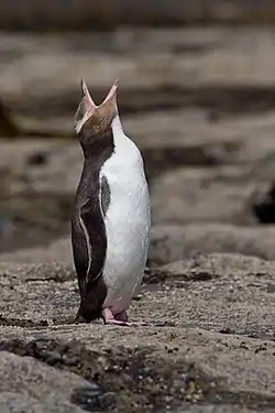 2. 1 2 3 4 5 6 7 8 9 10 11 "Yellow-eyed penguin". New Zealand Birds Online. Retrieved 27 September 2019.