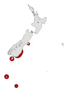 A dwarf subspecies from the Chatham Islands, M. a. richdalei, is extinct.[11] The modern population of yellow-eyed penguins does not breed on the Chatham Islands.
