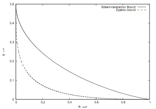 In coding theory, the Zyablov bound is a lower bound on the rate and relative distance that are achievable by concatenated codes.